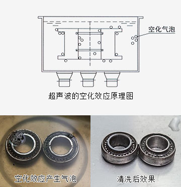 超聲清洗基于超聲空化的作用,當(dāng)超聲波的形成氣泡后突然破裂(閉合)的瞬間能產(chǎn)生超過(guò)1000個(gè)大氣壓力,這種連續(xù)不斷產(chǎn)生的瞬間高壓強(qiáng)烈沖擊物件表面,使物體表面及縫隙中的污垢迅速剝落,從而達(dá)到物體表面清潔凈化的目的。